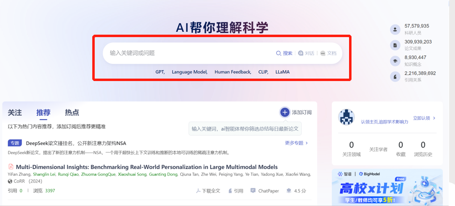 1.在Aminer的首页对话框中输入所关心的学术问题,例如“量子计算领域的主要热点有哪些?